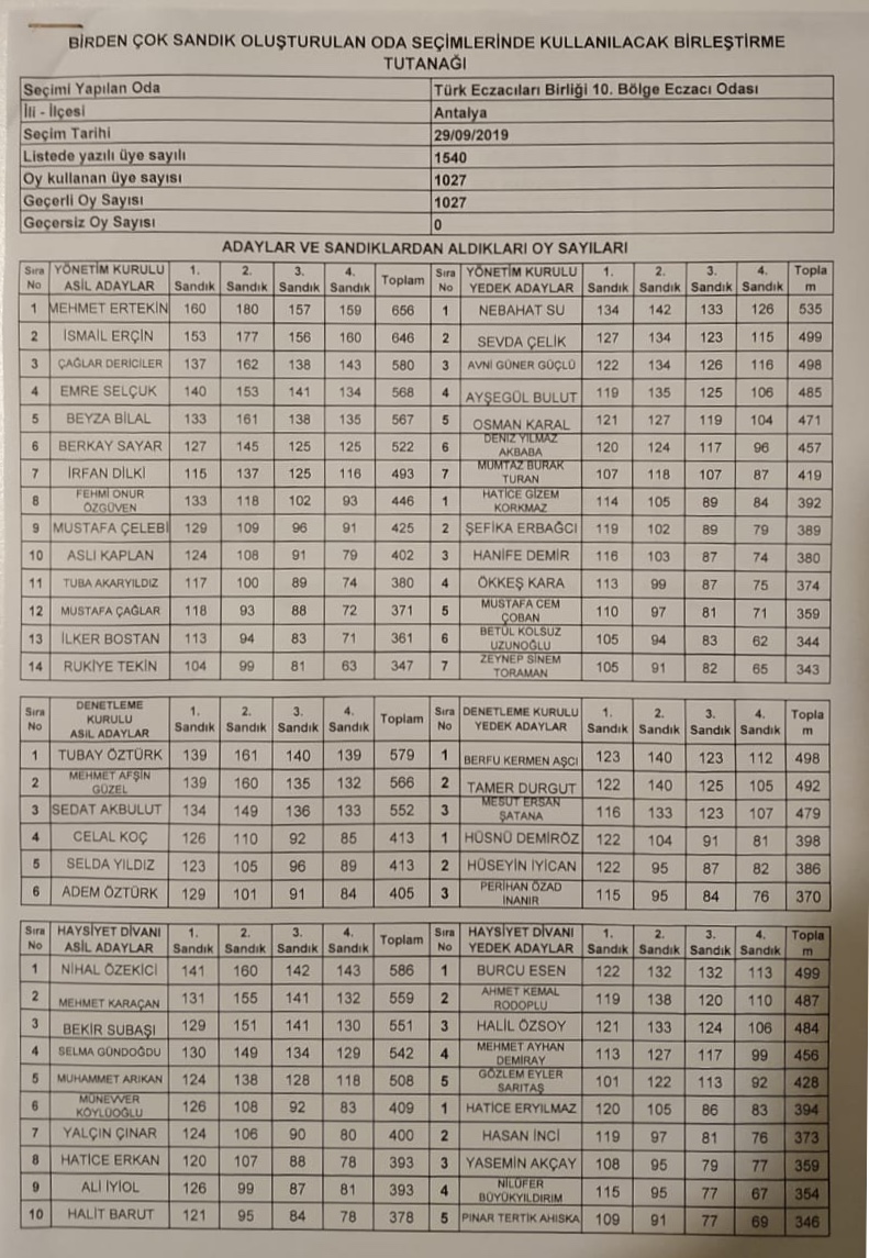 2019 YILI OLAĞAN SEÇİMLİ GENEL KURULU KESİNLEŞMEMİŞ SEÇİM SONUÇLARI EKTE BULUNMAKTADIR.
