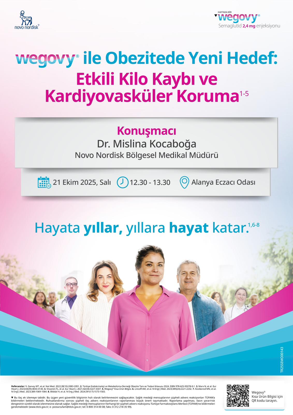 21 Ekim Salı günü saat 12:30'da , Vegovy firması tarafından (Nova Nordisk Bölgesel Medikal Müdürü) Dr. MislinaKocaboğa 'nın katılımıyla "Vegovy ile Obezitede Yeni Hedef :Etkili Kilo Kaybı ve Kardiyovasküler Koruma" konulu eğitim toplantısı düzenlenecektir.