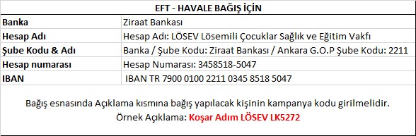 Koşmadan bağış yaparak destek olmak için ,