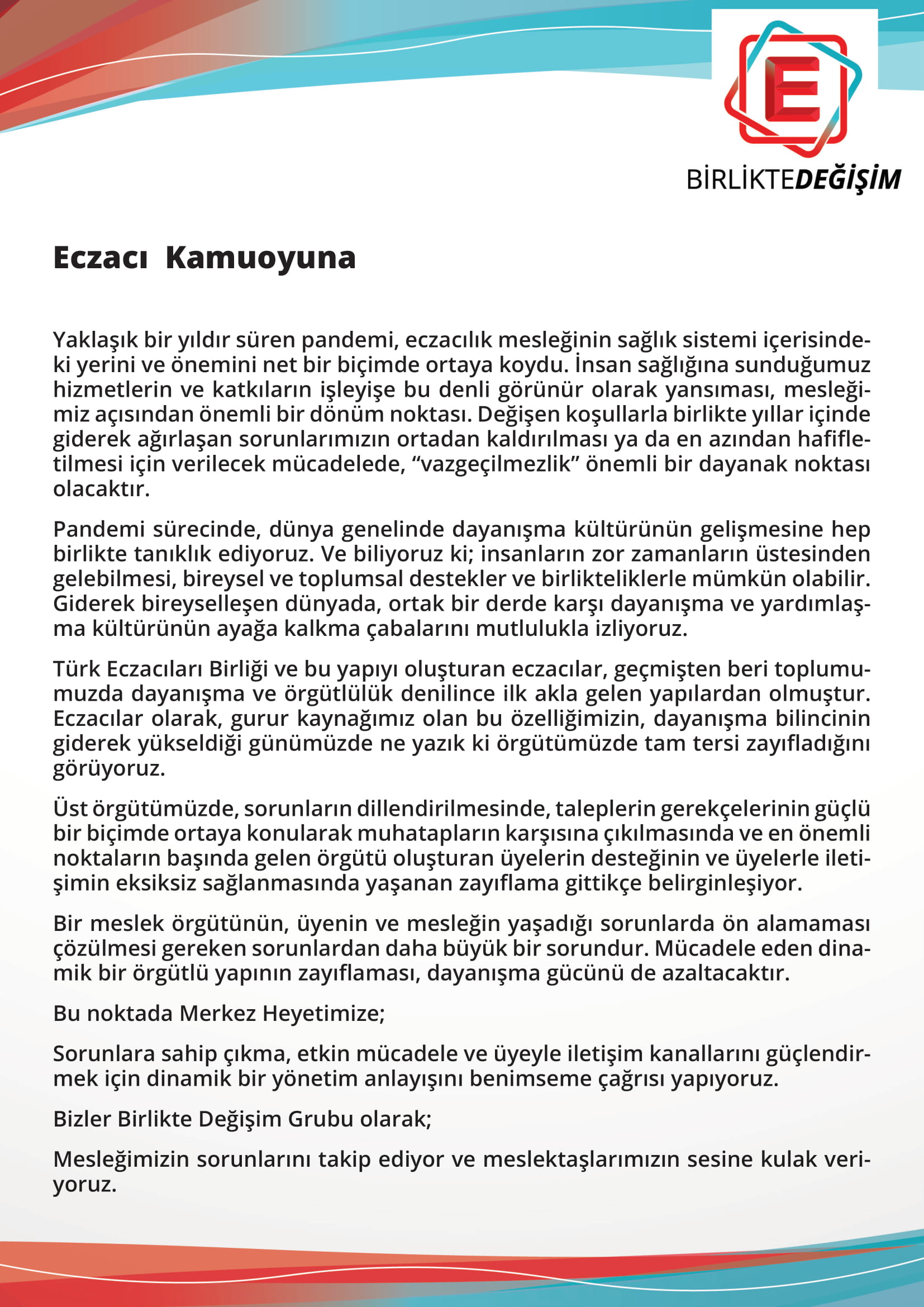 Yaklaşık bir yıldır süren pandemi, eczacılık mesleğinin sağlık sistemi içerisindeki yerini ve önemini net bir biçimde ortaya koydu. İnsan sağlığına sunduğumuz.....