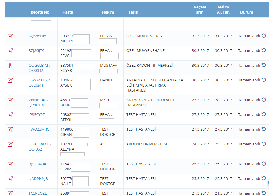Hasta raporları hem doktor hem de eczane tarafından kayıt edilebilmektedir.